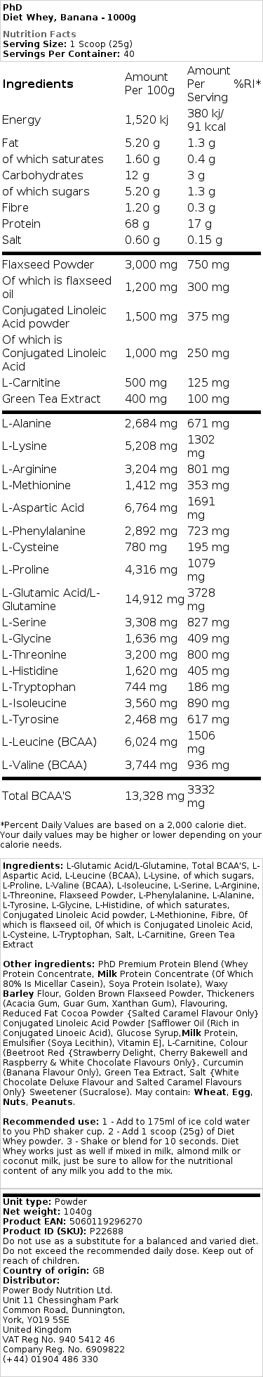 PhD Diet Whey er ideelt for både mænd og kvinder, der ønsker at fremme en sund kropskomposition eller opretholde en slank fysik hele året rundt. Produktet er også velegnet for vegetarer.